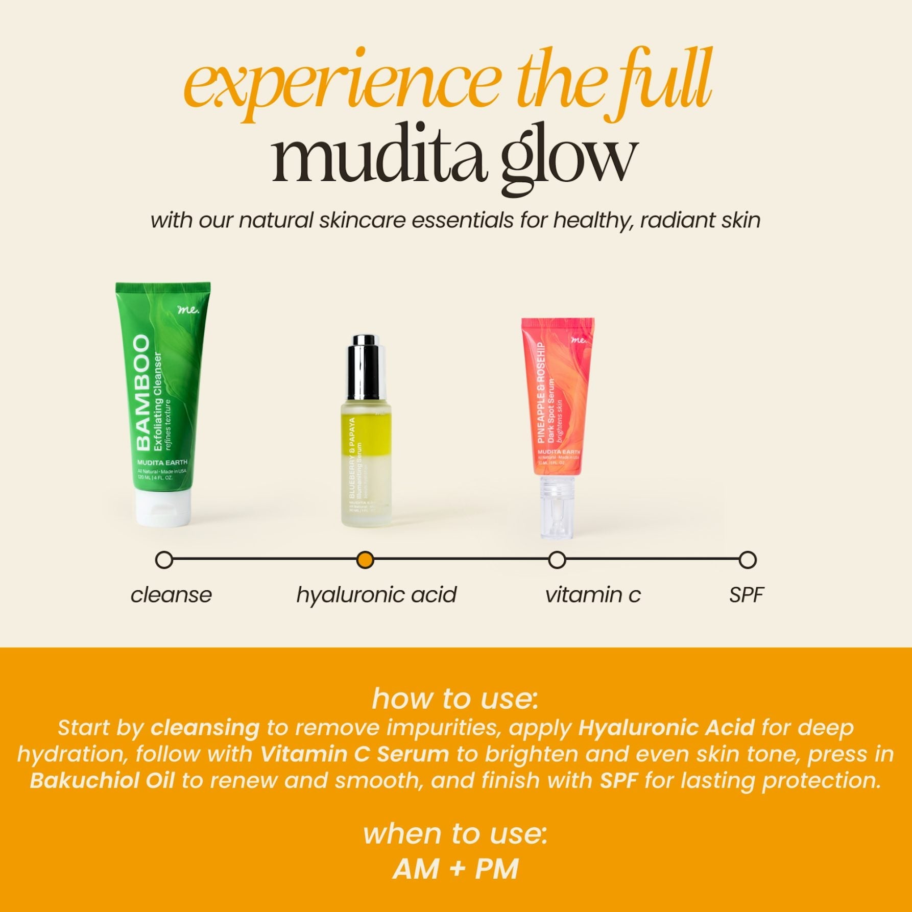 Description: Unlock radiant, even-toned skin with our Blueberry & Papaya Rejuvenating Serum - a powerhouse blend of antioxidant-rich botanicals and gentle fruit enzymes. Crafted for all skin types, this plant-based serum targets hyperpigmentation, brightens dull skin, and soothes irritation without harsh chemicals. Blueberry delivers potent antioxidants to fight free radicals, while papaya enzymes gently exfoliate and promote cell renewal for a glowing complexion. This formula is perfect for sensitive, acne-prone, or mature skin.