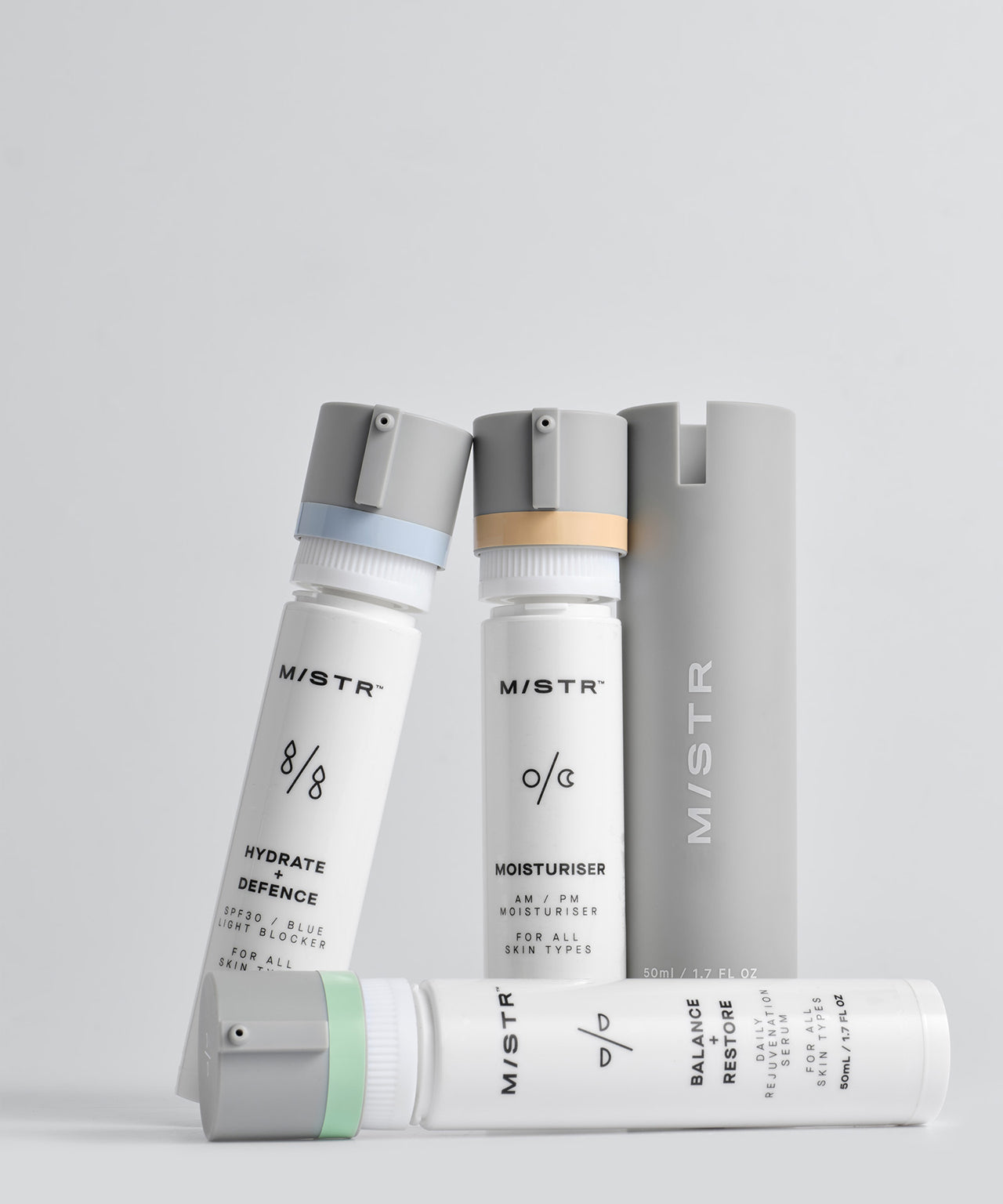 The Complete_Set, is a comprehensive collection designed to elevate your grooming routine and leave your skin looking and feeling its best. This set combines the MISTR's core range of refillable skincare for a simple yet effective regimen to address all your skincare needs. Elevate your daily routine with these essential products.