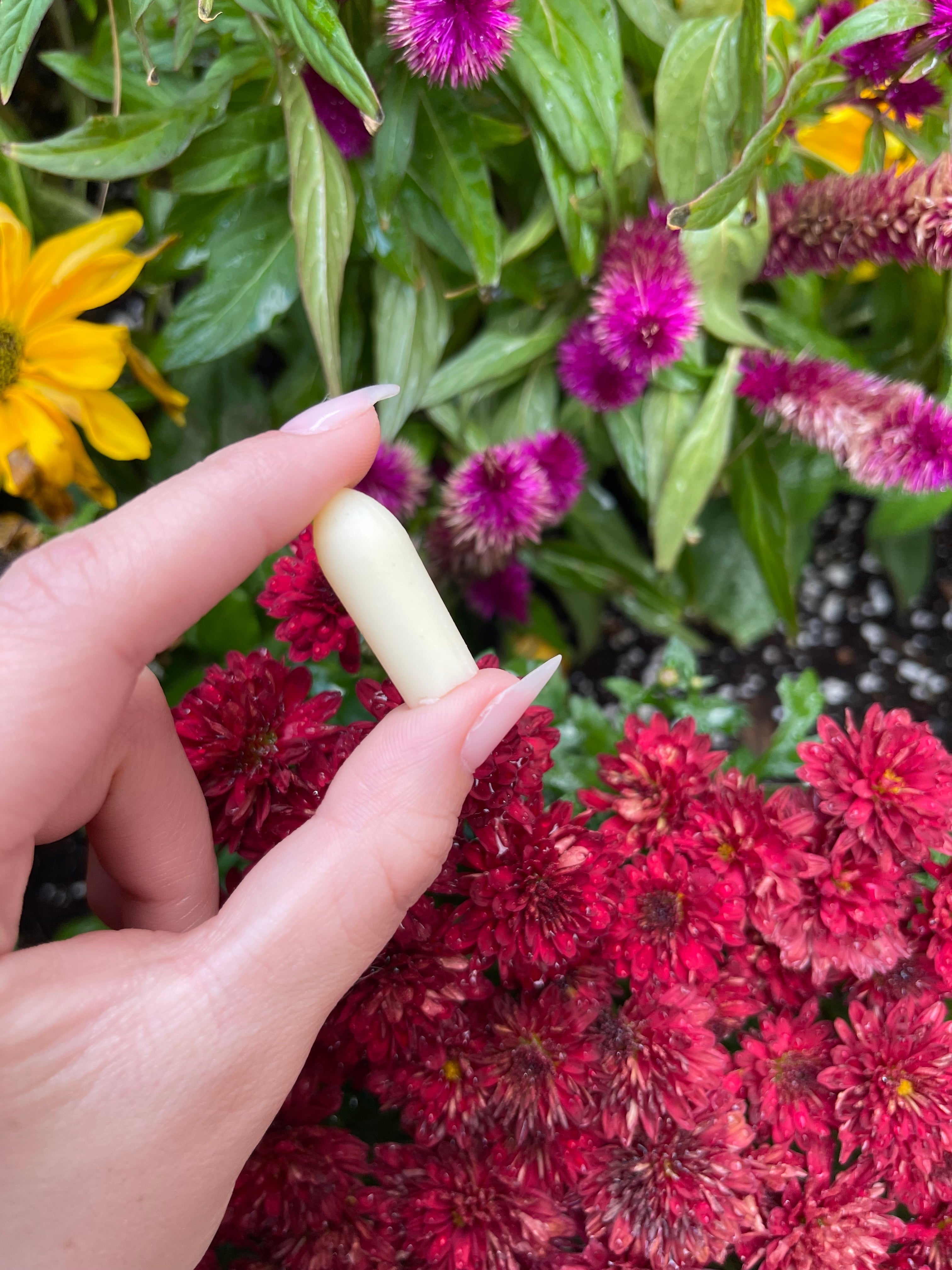 What's Inside: Palm Kernel Oil, Organic Coconut Oil, Organic Beeswax, Organic Tapioca & Potato Starch, Organic Evening Primrose Oil, Organic Sea Buckthorn Fruit Oil, Organic Calendula Oil, Corn Silk Extract, Broccoli Extract, Aloe Vera Extract, Chamomile Extract, Plantain Leaf Extract, Marshmallow Root Extract, Organic Licorice Root Extract, Vitamin E (Tocopherol, Sunflower-Derived), Organic Myrtle Essential Oil, Organic Neem Oil, Organic Rose Essential Oil, Organic Orange Essential Oil.