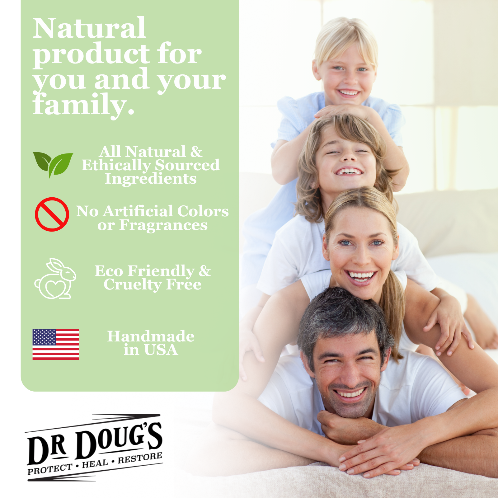 Discover Dr. Doug's Original Miracle Balm—a gentle yet potent solution for various skin concerns. Crafted to soothe dry, itchy skin and prevent chafing and blisters, this balm offers fast relief without greasy residue. Enriched with organic beeswax, shea butter, coconut oil, and olive oil, it's perfect for eczema, chapped hands, and more. Enhanced with organic essential oils for soft, nourished skin.