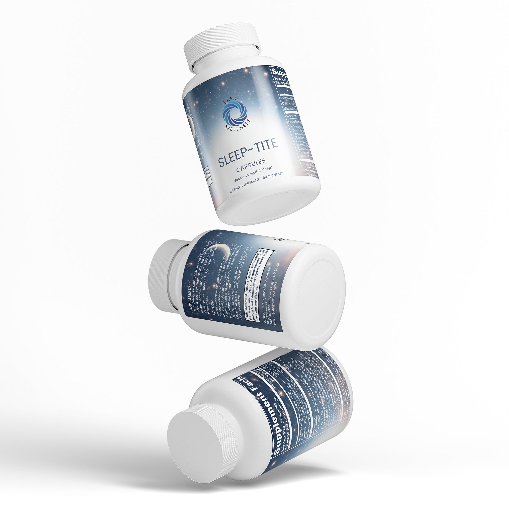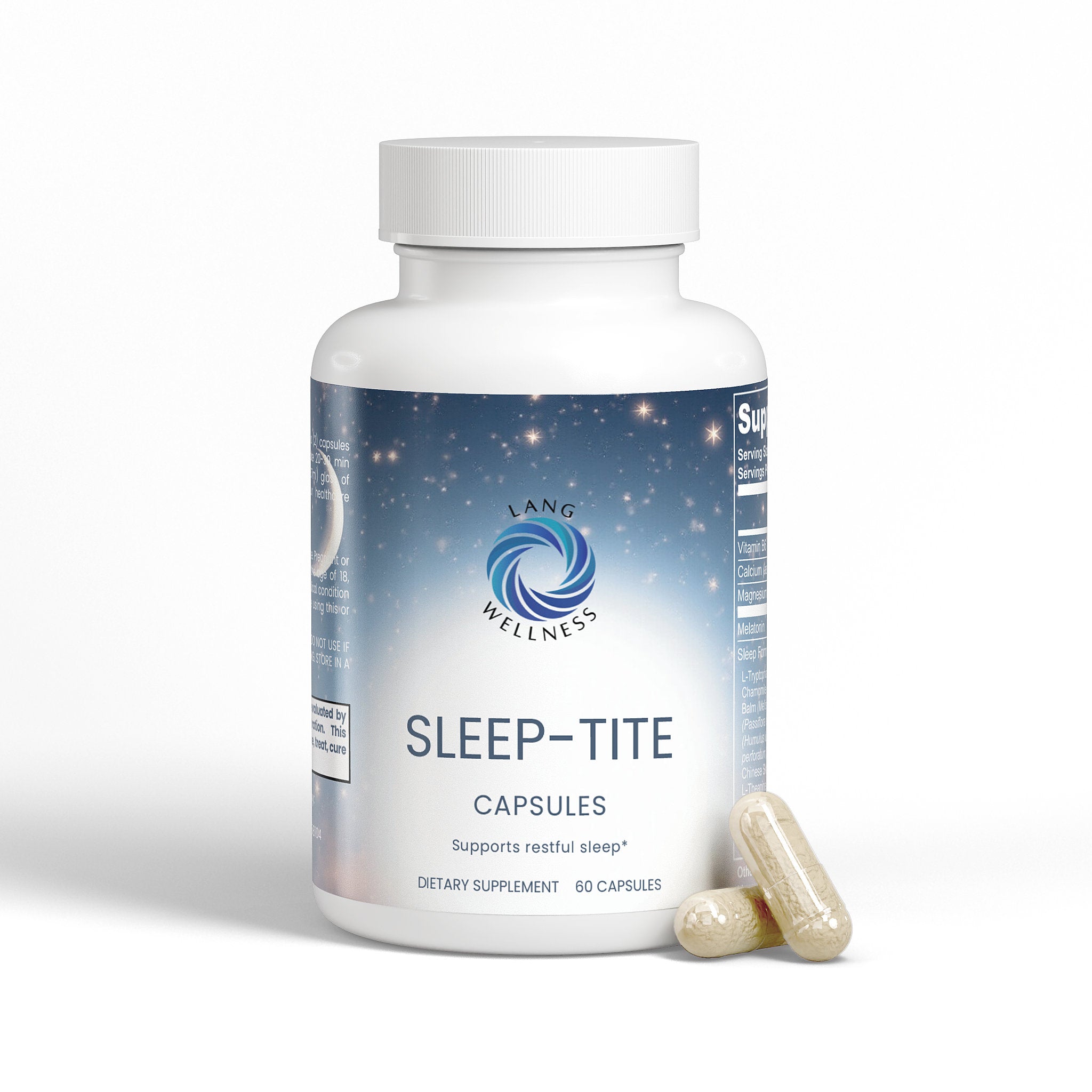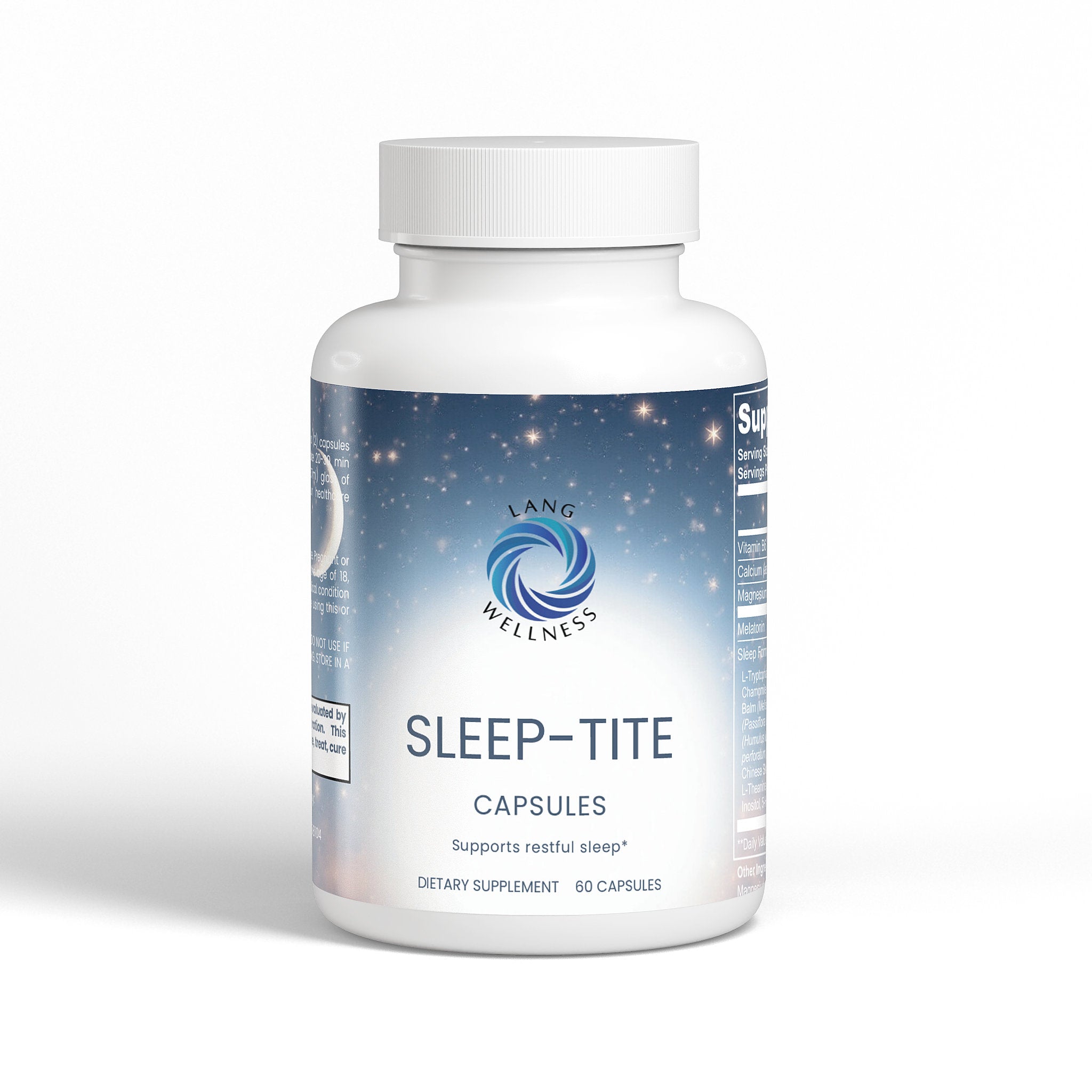 Ingredients: Magnesium citrate, Pyridoxine HCl Powder (Vitamin B6), Calcium carbonate, Melatonin, Sleep Formula Proprietary Blend (L-Tryptophan, Lycium (Lycium barbarum L.) (fruit), Chamomile (Matricaria chamomilla L.) (flower), Lemon Balm (Melissa officinalis) (aerial), Passion Flower (Passiflora incarnata) (flower), L-Taurine, Hops (Humulus lupulus) (flower), St. John’s Wort (Hypericum perforatum) (aerial), Gamma-Aminobutyric Acid (GABA), Chinese Skullcap (Scutellaria baicalensis) (root), L-Theanine, Ashwagandha (Withania somnifera) (root), Inositol, 5-HTP (Griffonia simplicifolia) (seed)), Hypromellose (Vegatable Capsule), Silicon Dioxide (Sipernat 22), Magnesium Stearate.