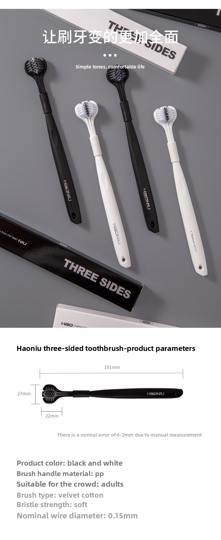Triple-Sided Soft Bristle Toothbrush